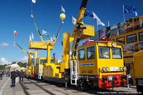 Nyissuk a hagyományosan a szabadtéri terület északnyugati sarkában csoportosuló pályás és üzemi „sárga szörnyek” szemléjét az osztrák Plasser & Theurer standjával! A cég éppen az ÖBB-vel rendezett sajtóeseményt, melyet az osztrák vasúttársaság karbantartó-flottájának megújítására húztak fel, a fő téma pedig nyilvánvalóan a zöld/környezetbarát meghajtás és zajcsökkentés. Az osztrák Plasser ennek jegyében hozott bemutató járművei is már a különféle alternatív hajtásokkal érkeztek - felsővezetékes vagy hibrid megoldásokkal. Az Unimat ágyazattömörítő áramszedővel már korábban is szerepelt, mi is írtunk róla, az ATMO viszont nem volt még Berlinben kiállítva.